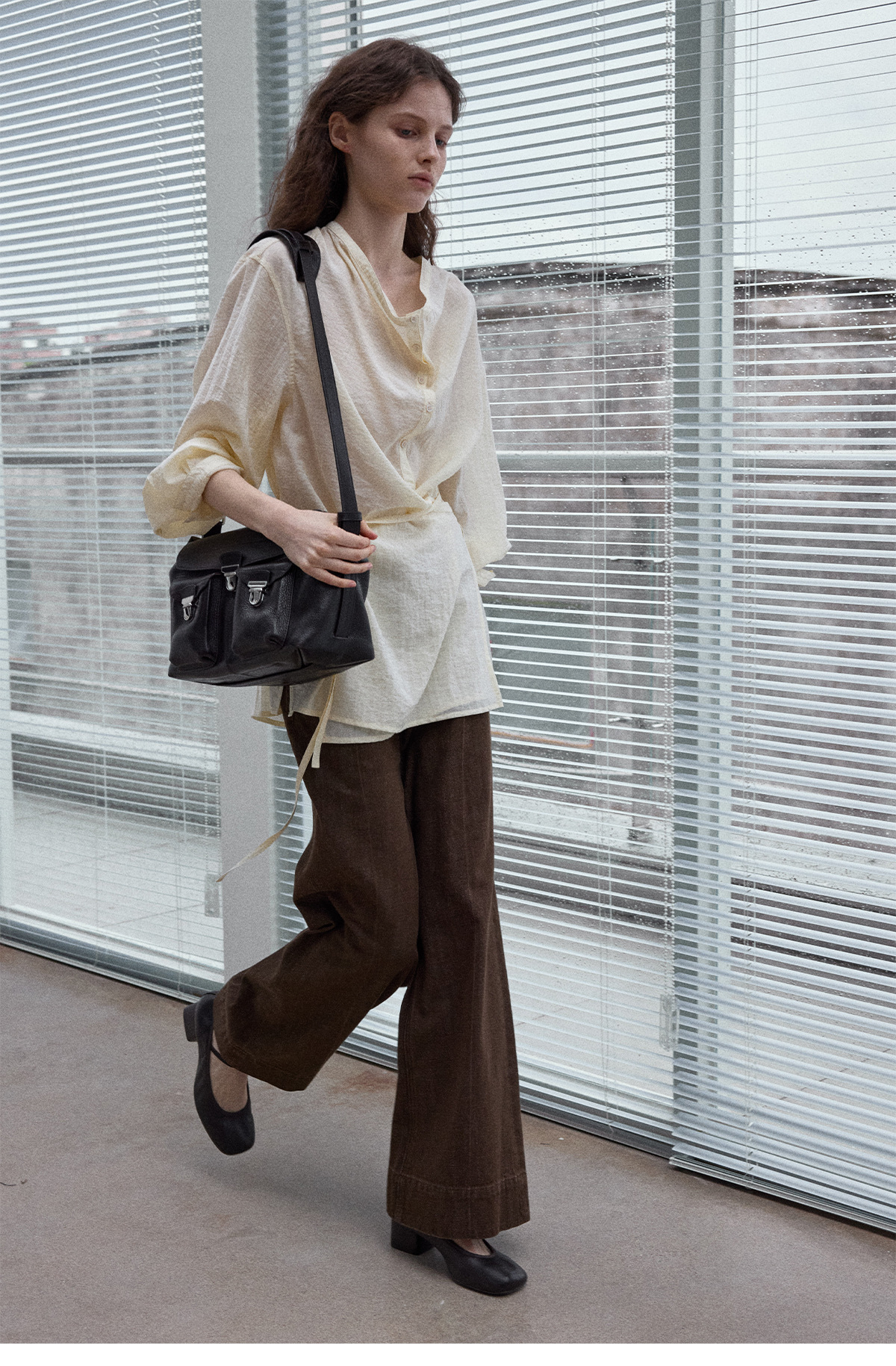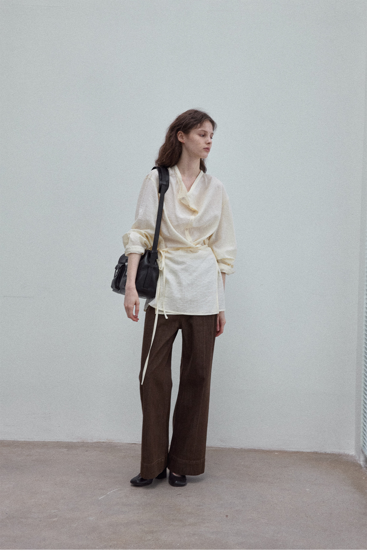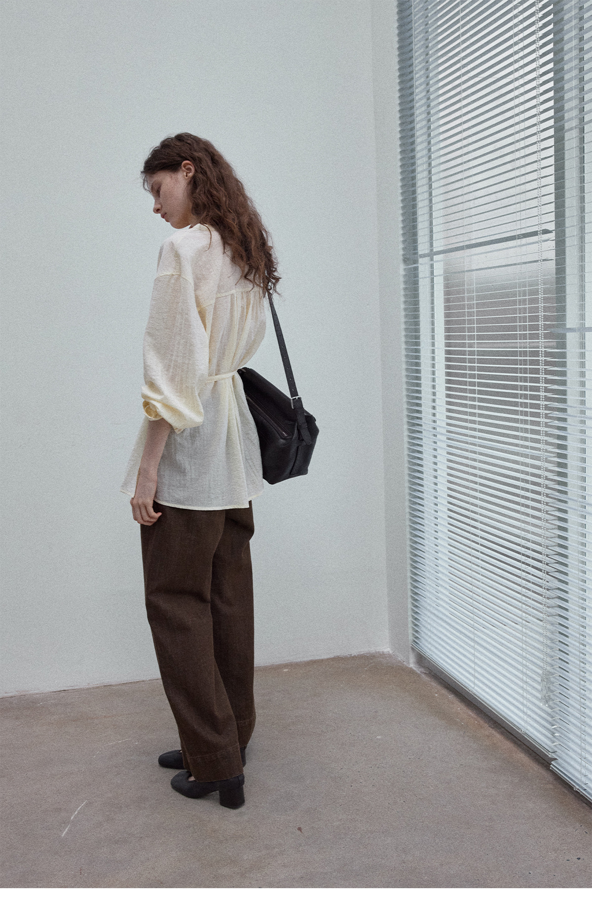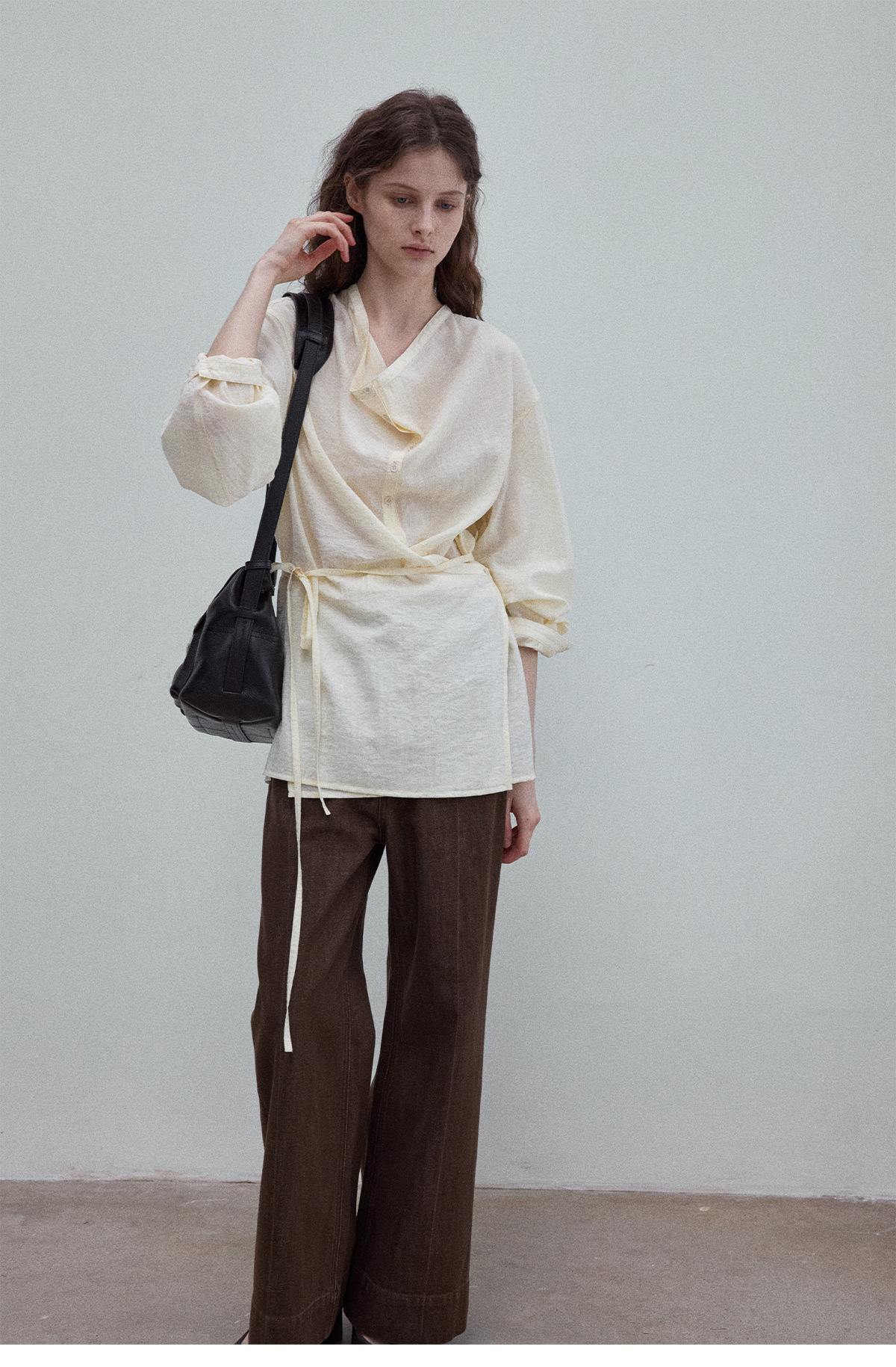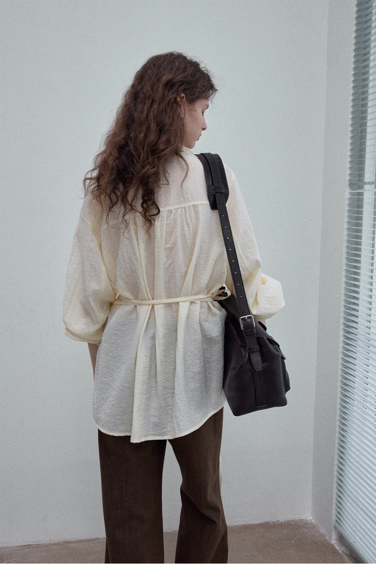 Natural breathable linen tailored turtleneck shirt, autumn everyday commuting long-sleeved women's beige
