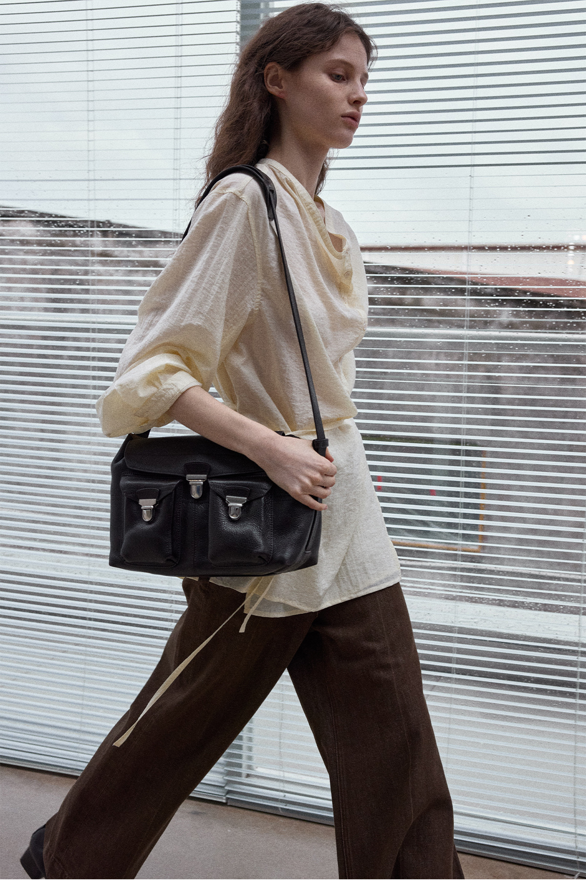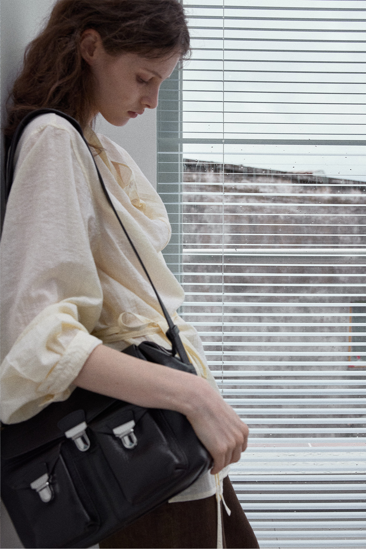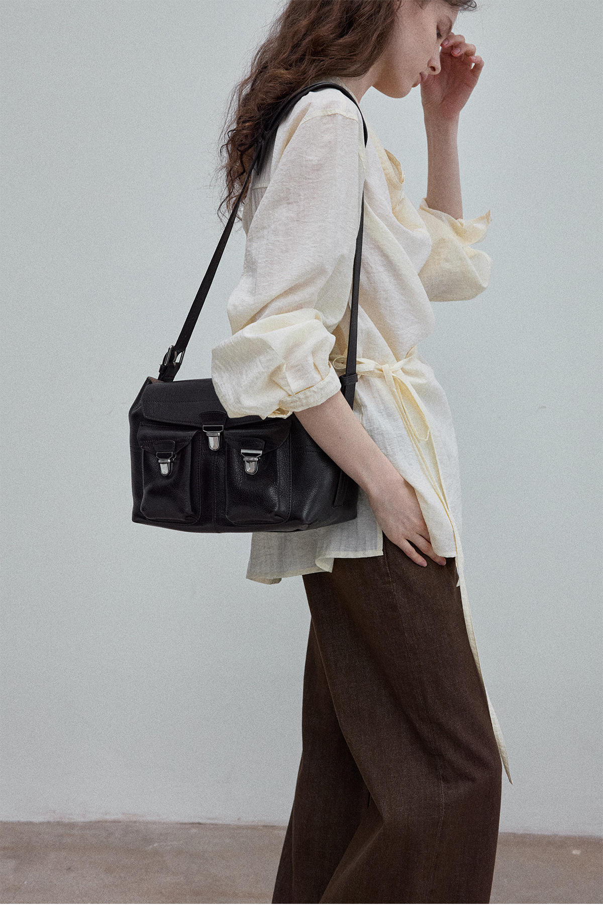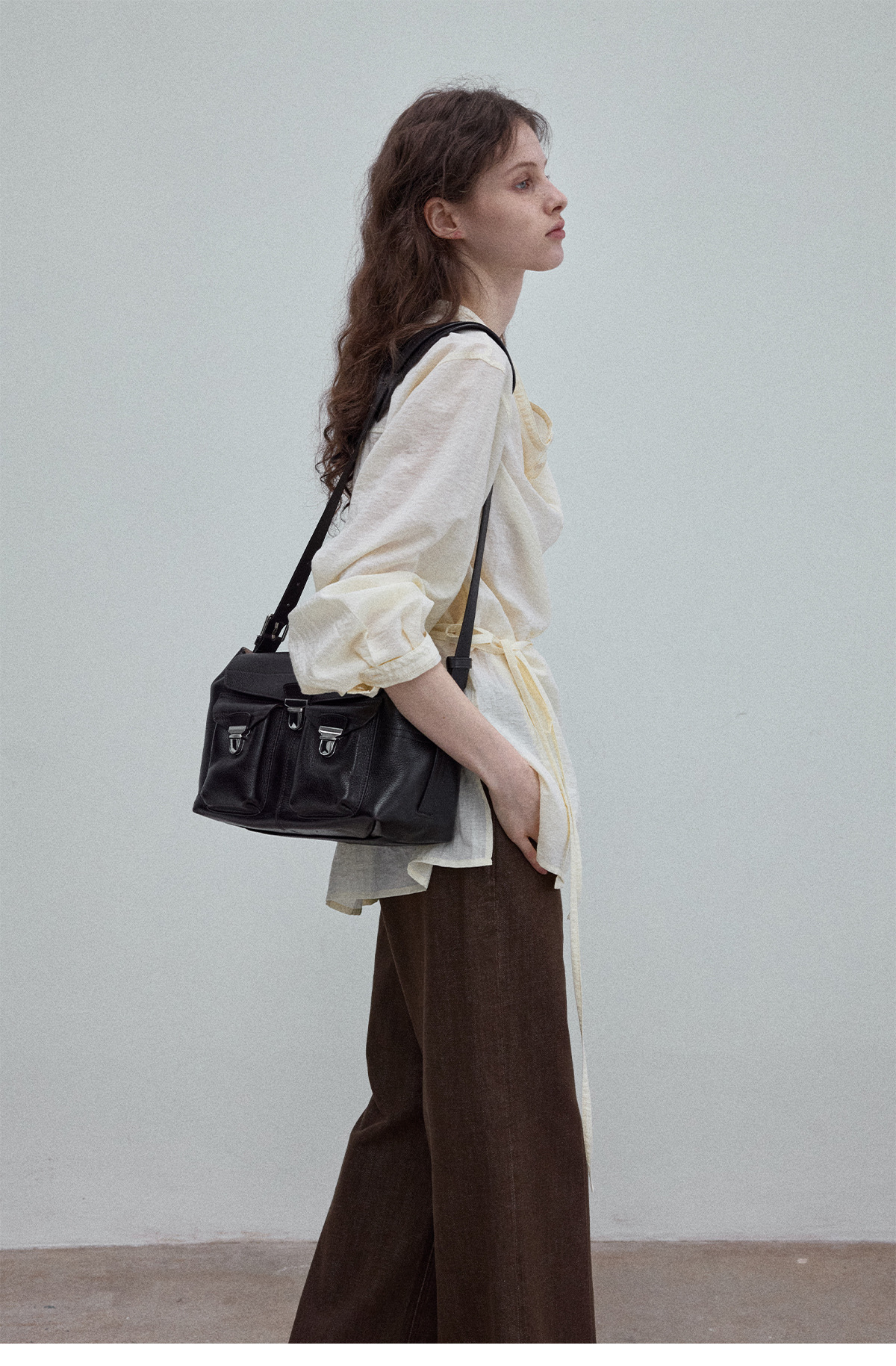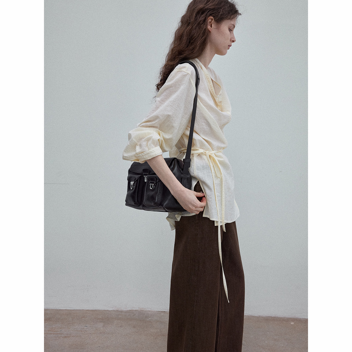 Natural breathable linen tailored turtleneck shirt, autumn everyday commuting long-sleeved women's beige