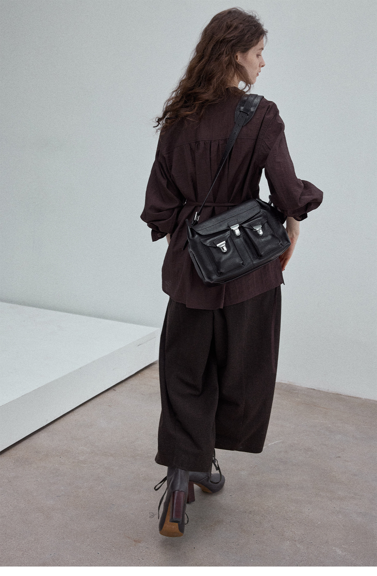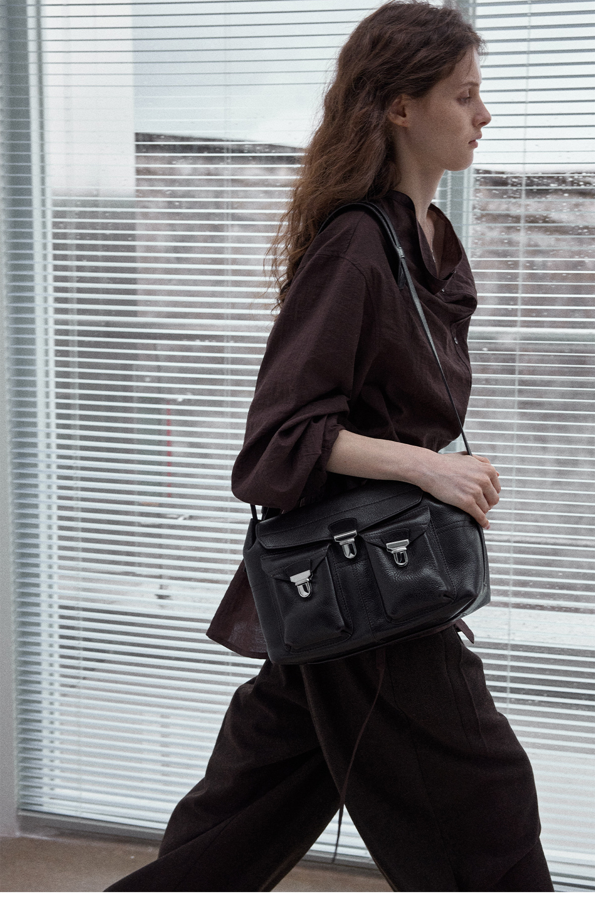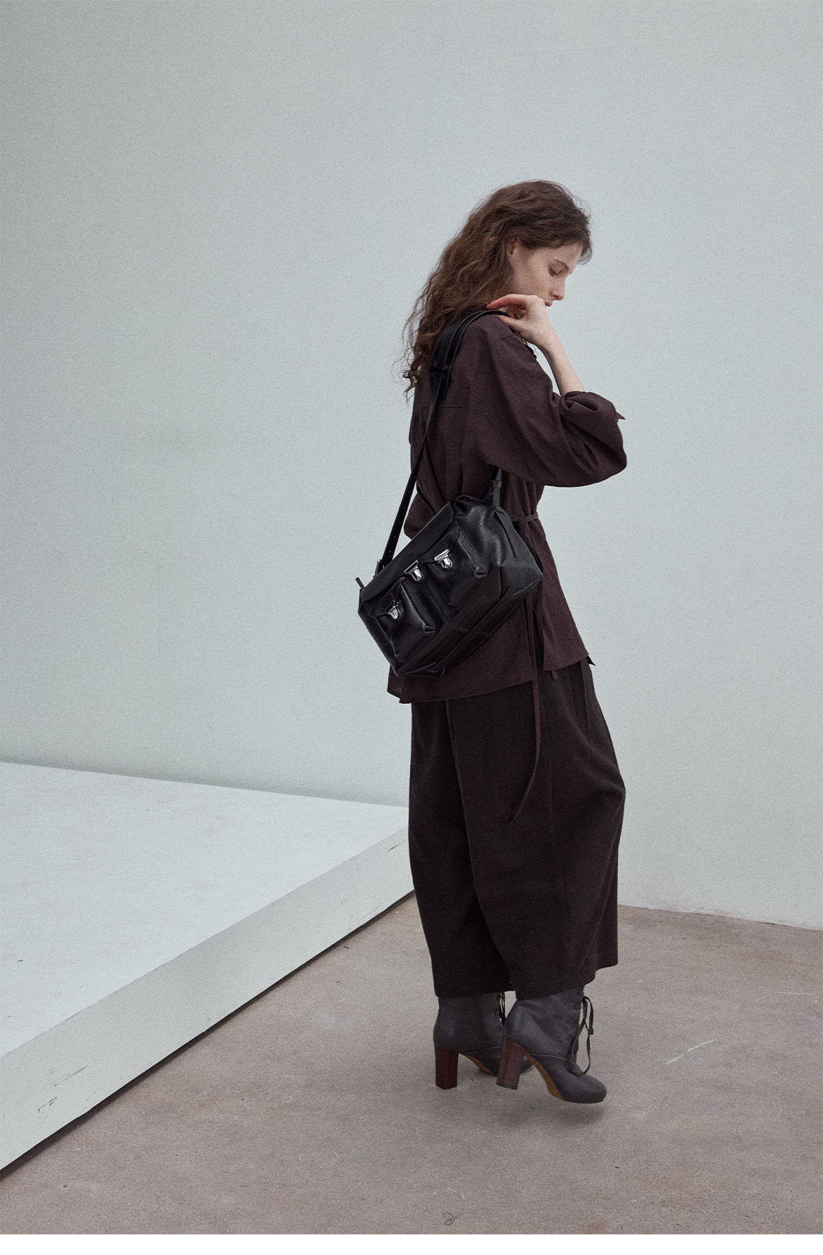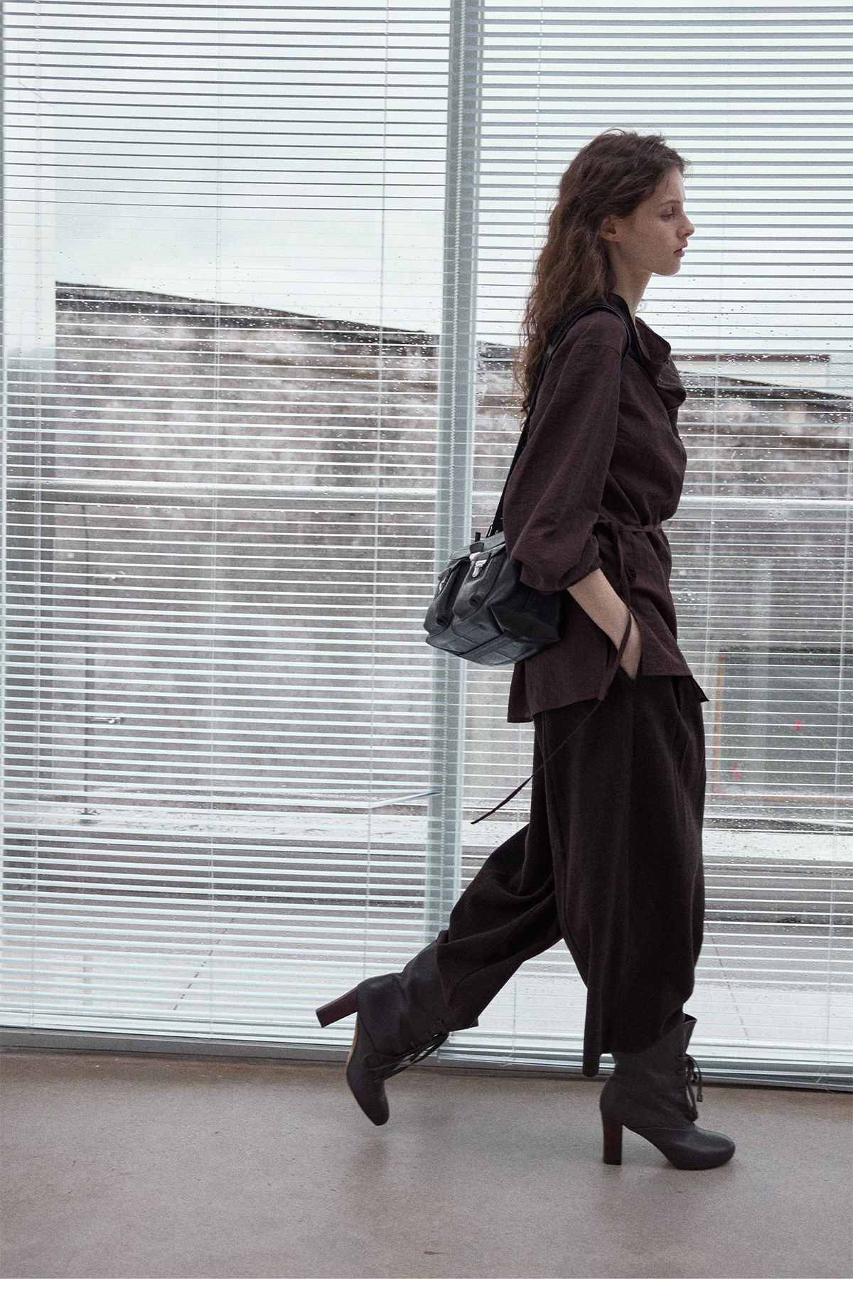Natural breathable linen tailored turtleneck shirt, autumn everyday commuting long-sleeved women's brown color