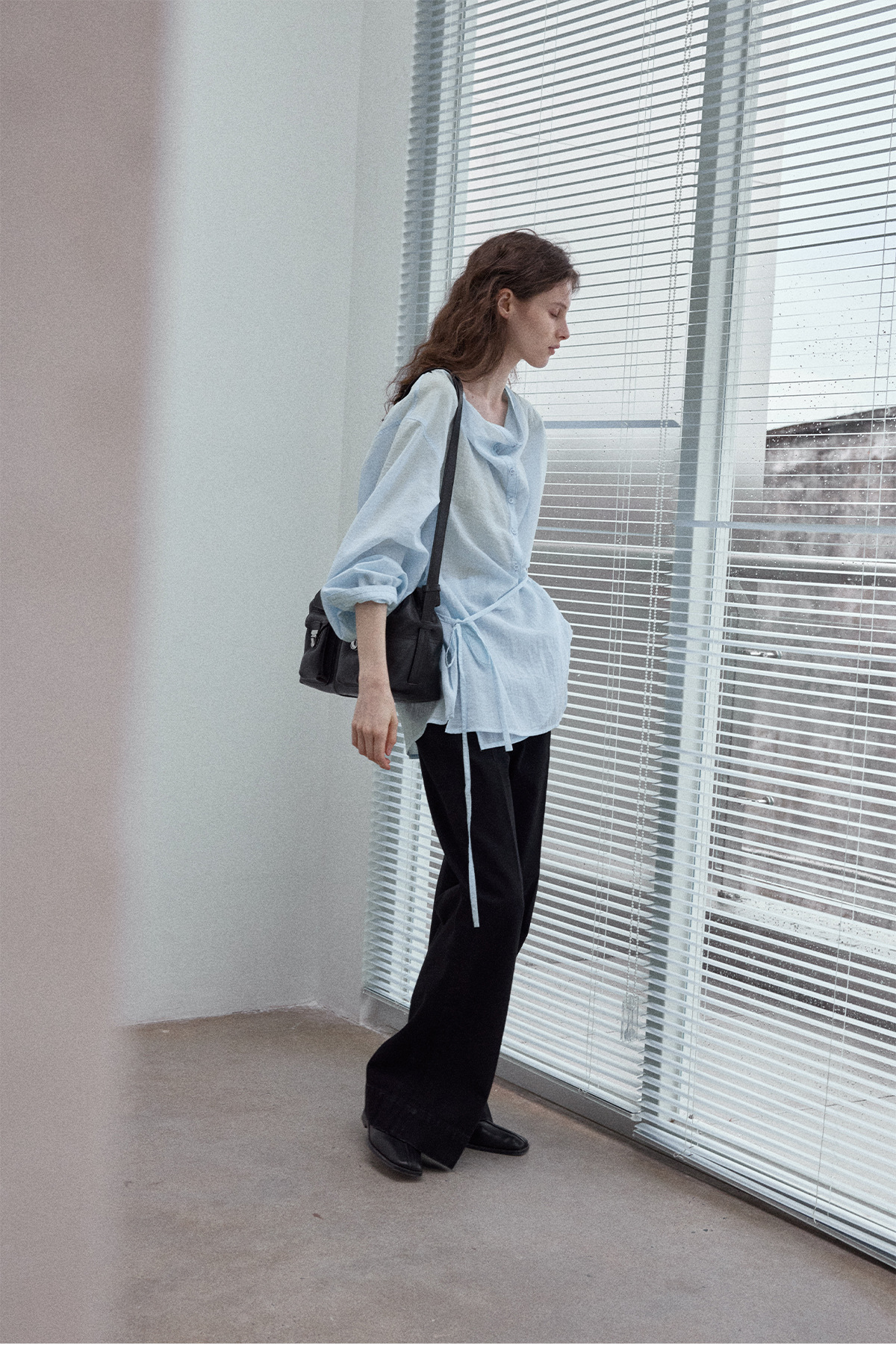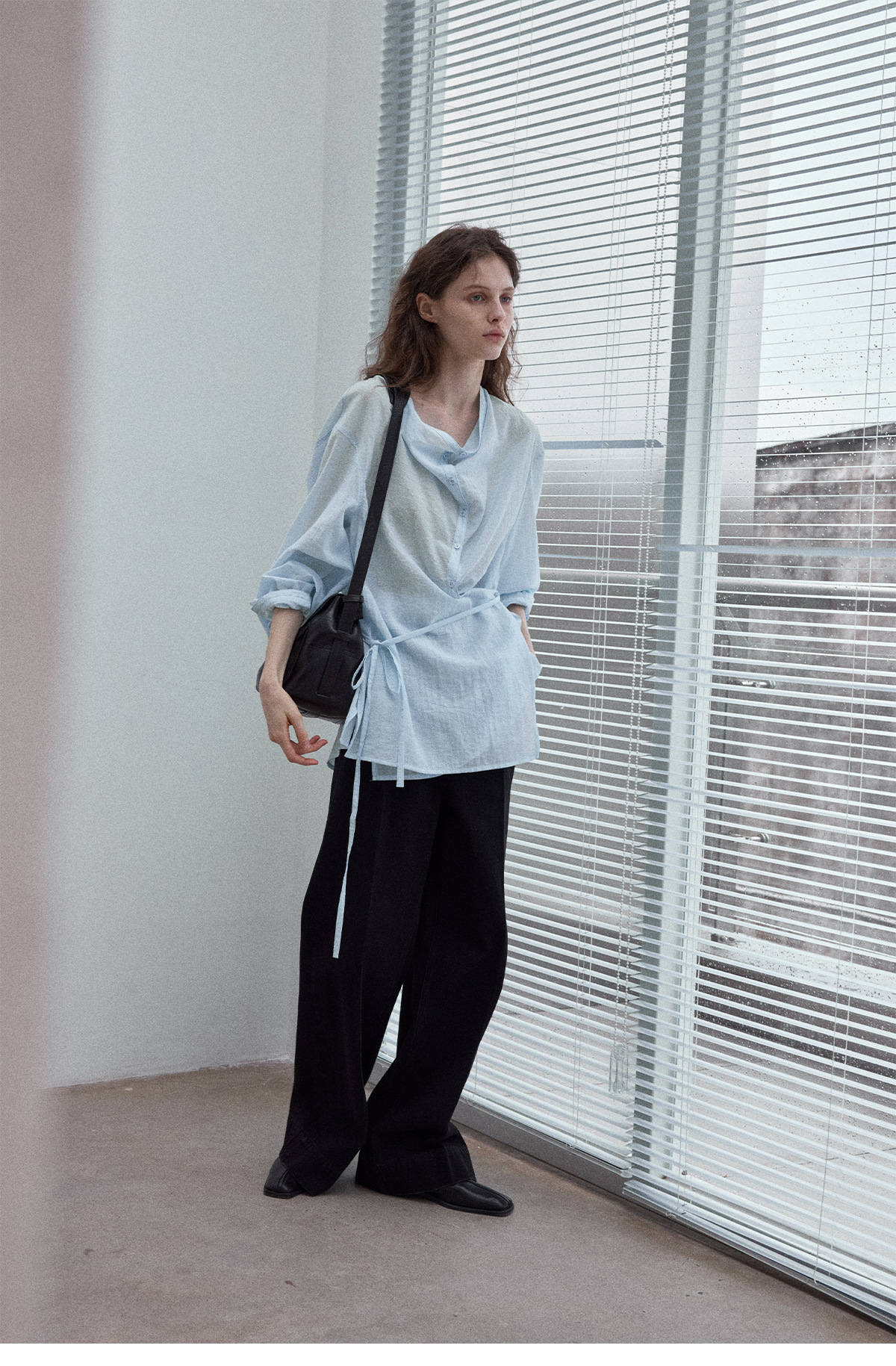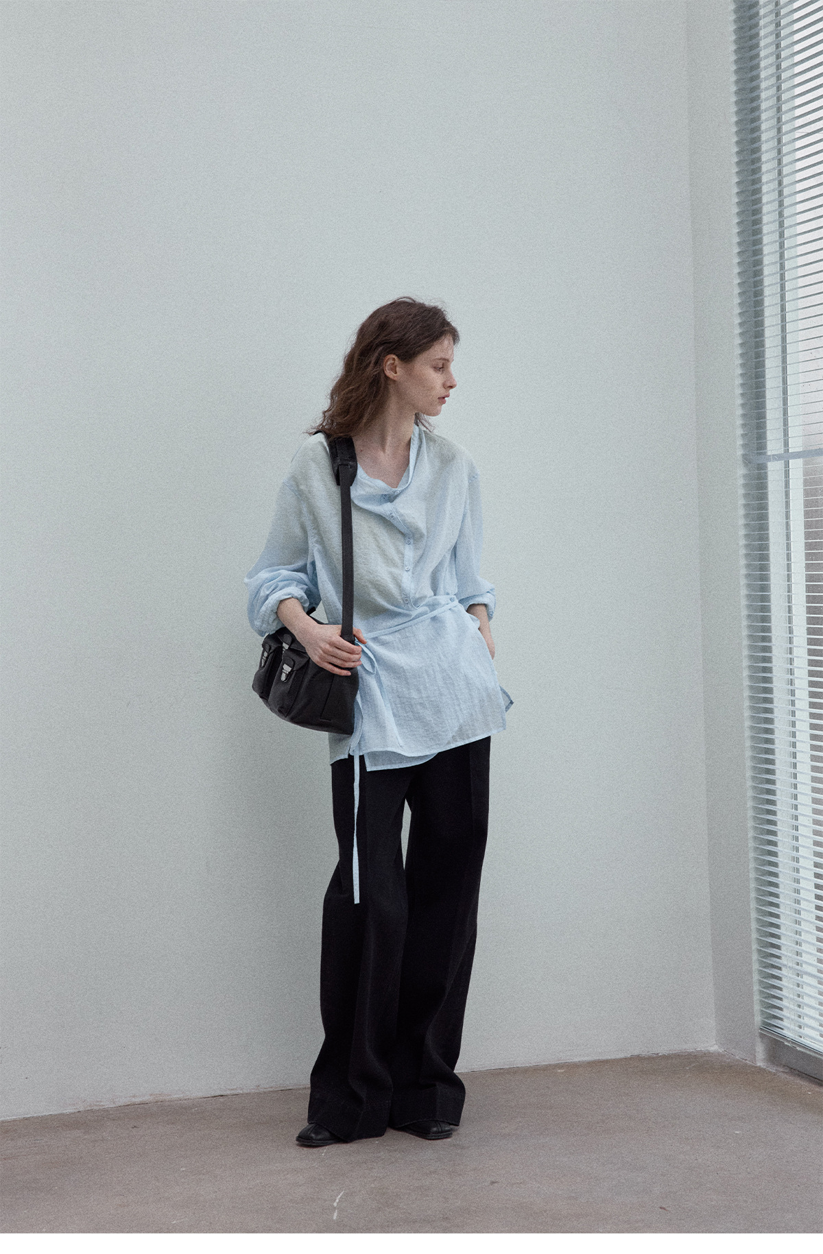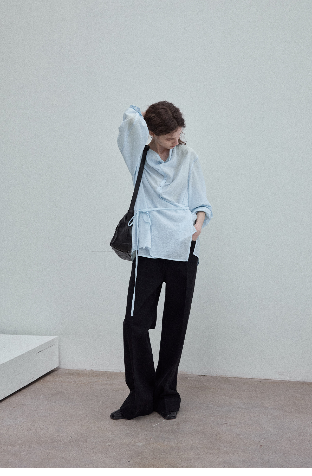 Natural breathable linen tailored turtleneck shirt, autumn everyday commuting long sleeves, women's - light green