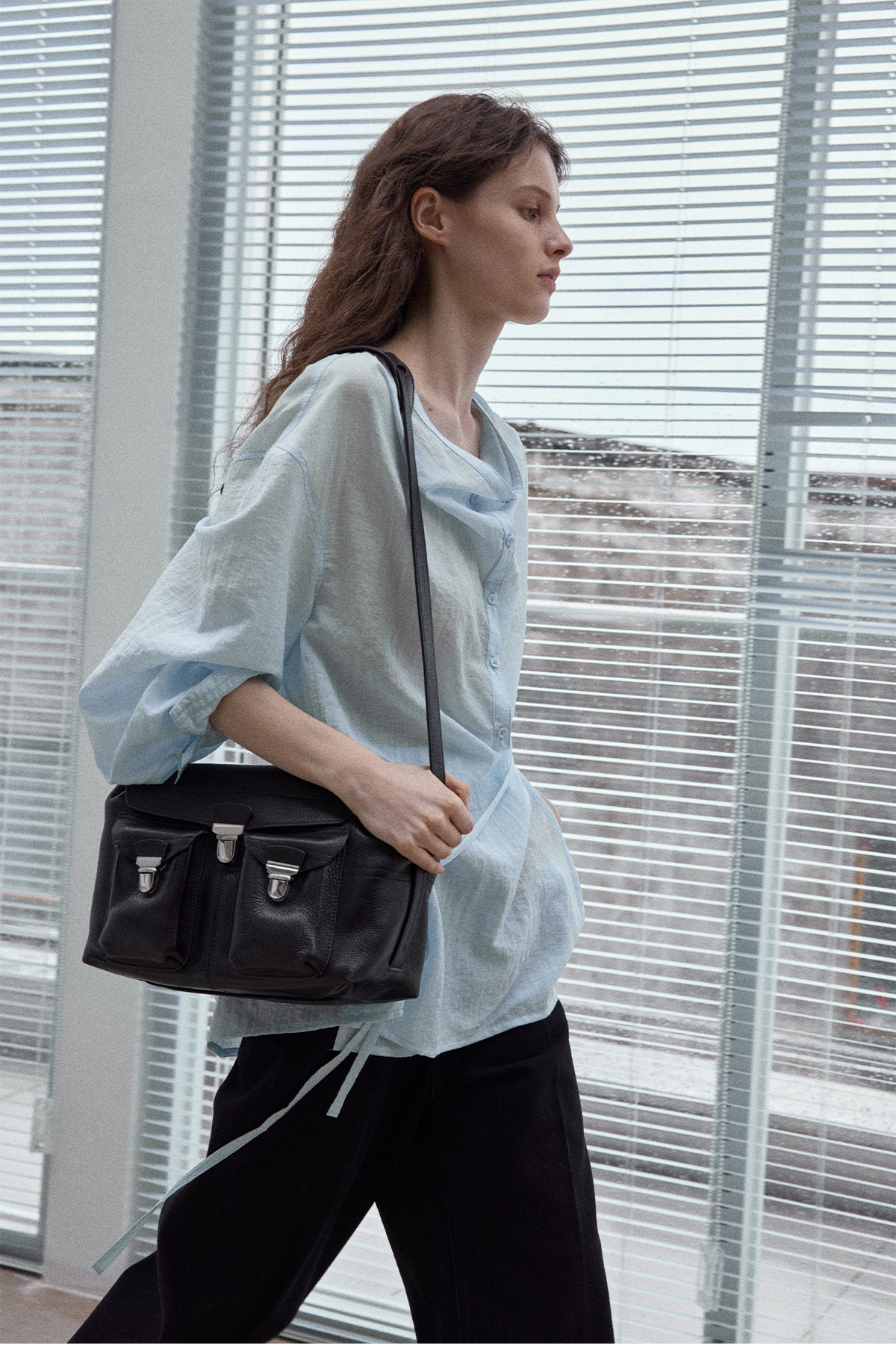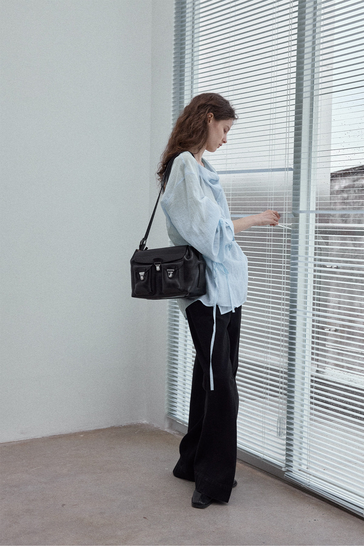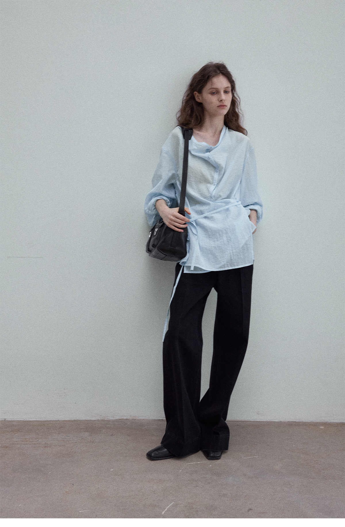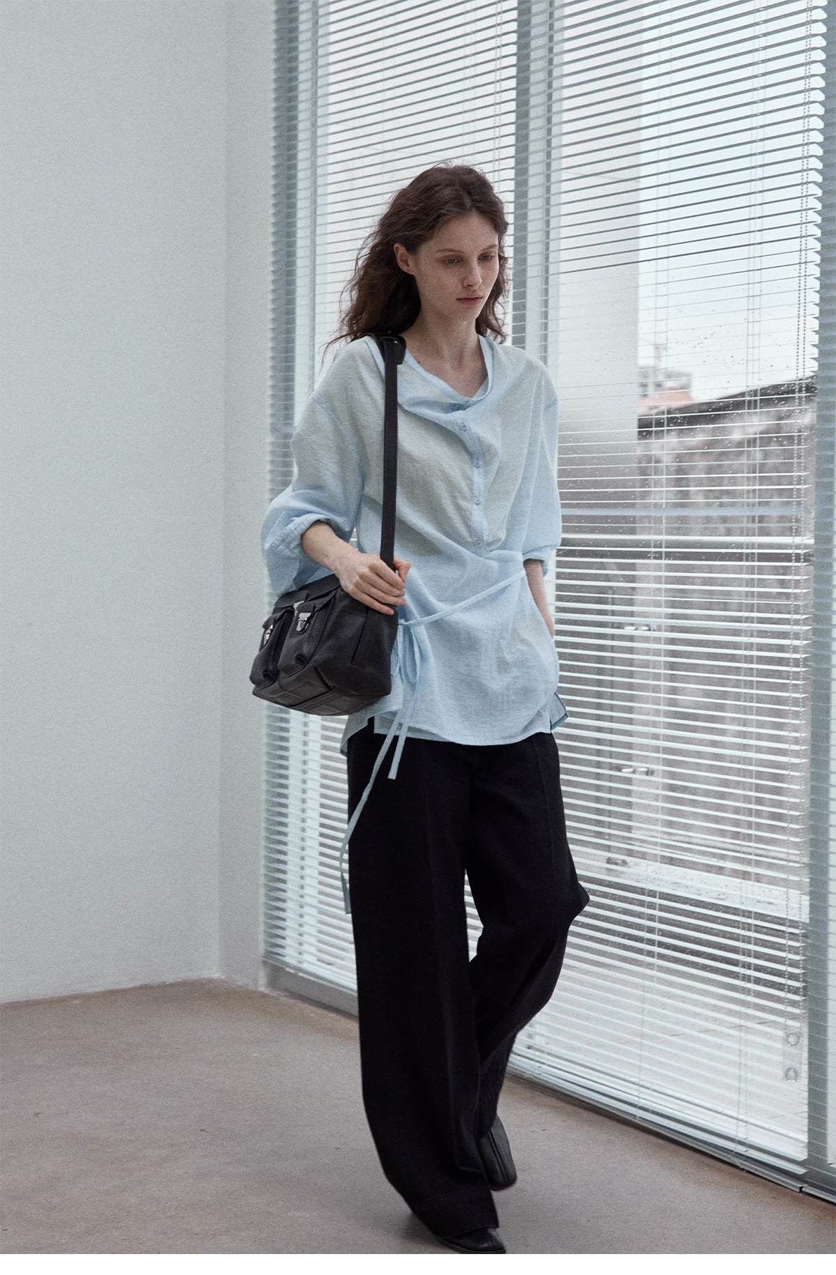 Natural breathable linen tailored turtleneck shirt, autumn everyday commuting long sleeves, women's - light green