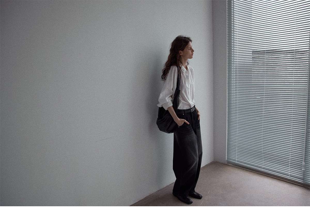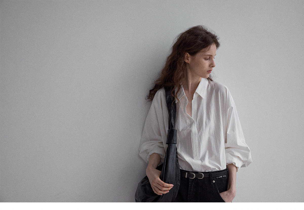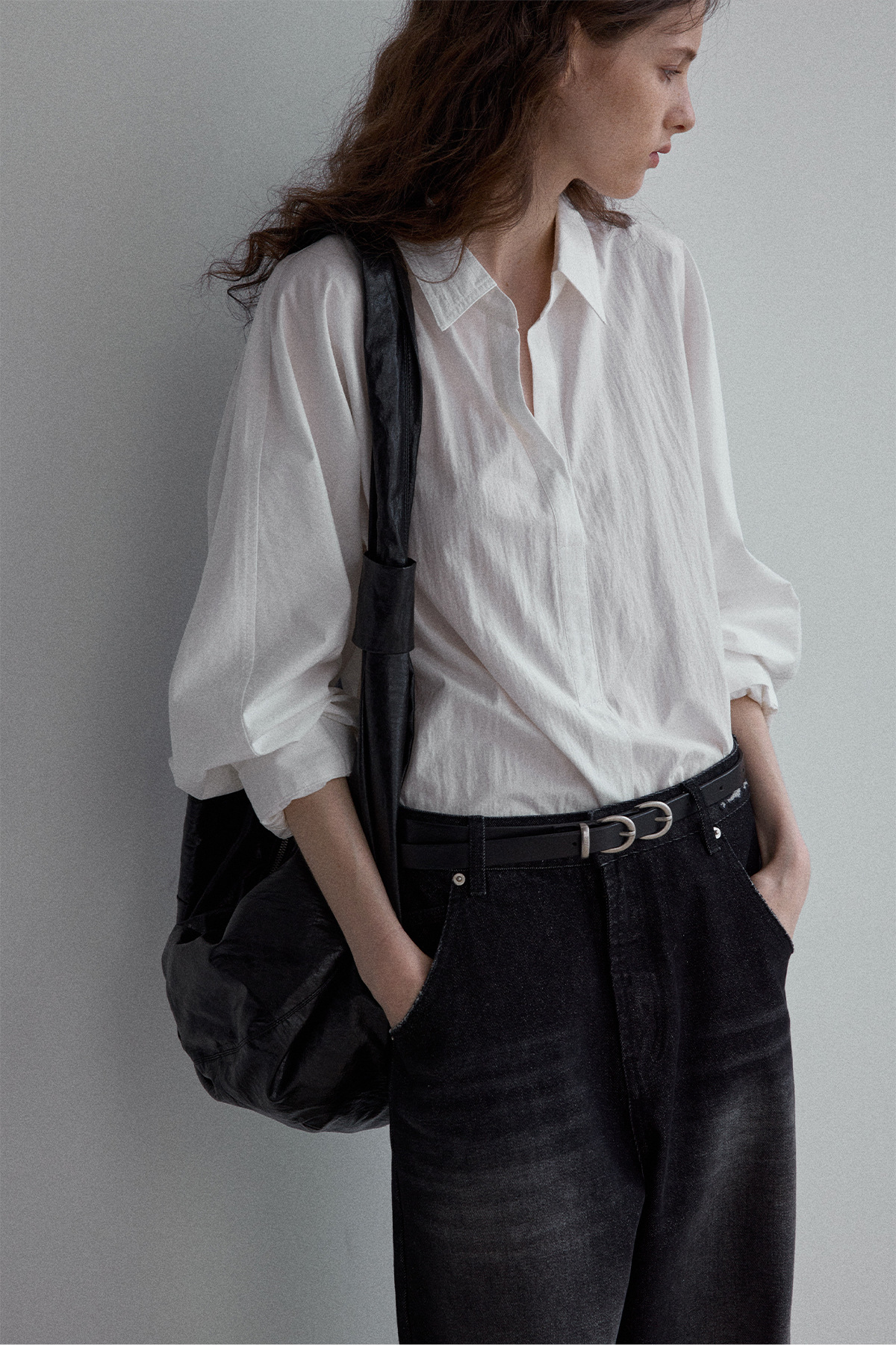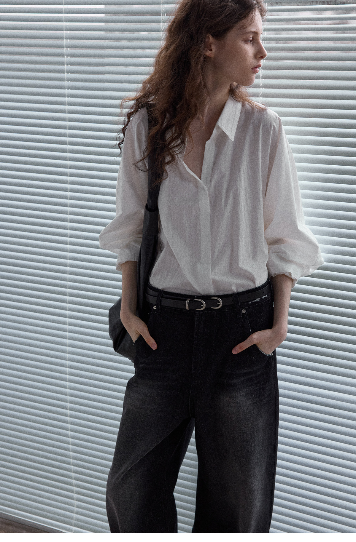 Simple, everyday, versatile pullover top with drawstring, batwing sleeves, and collar, new autumn style, white.