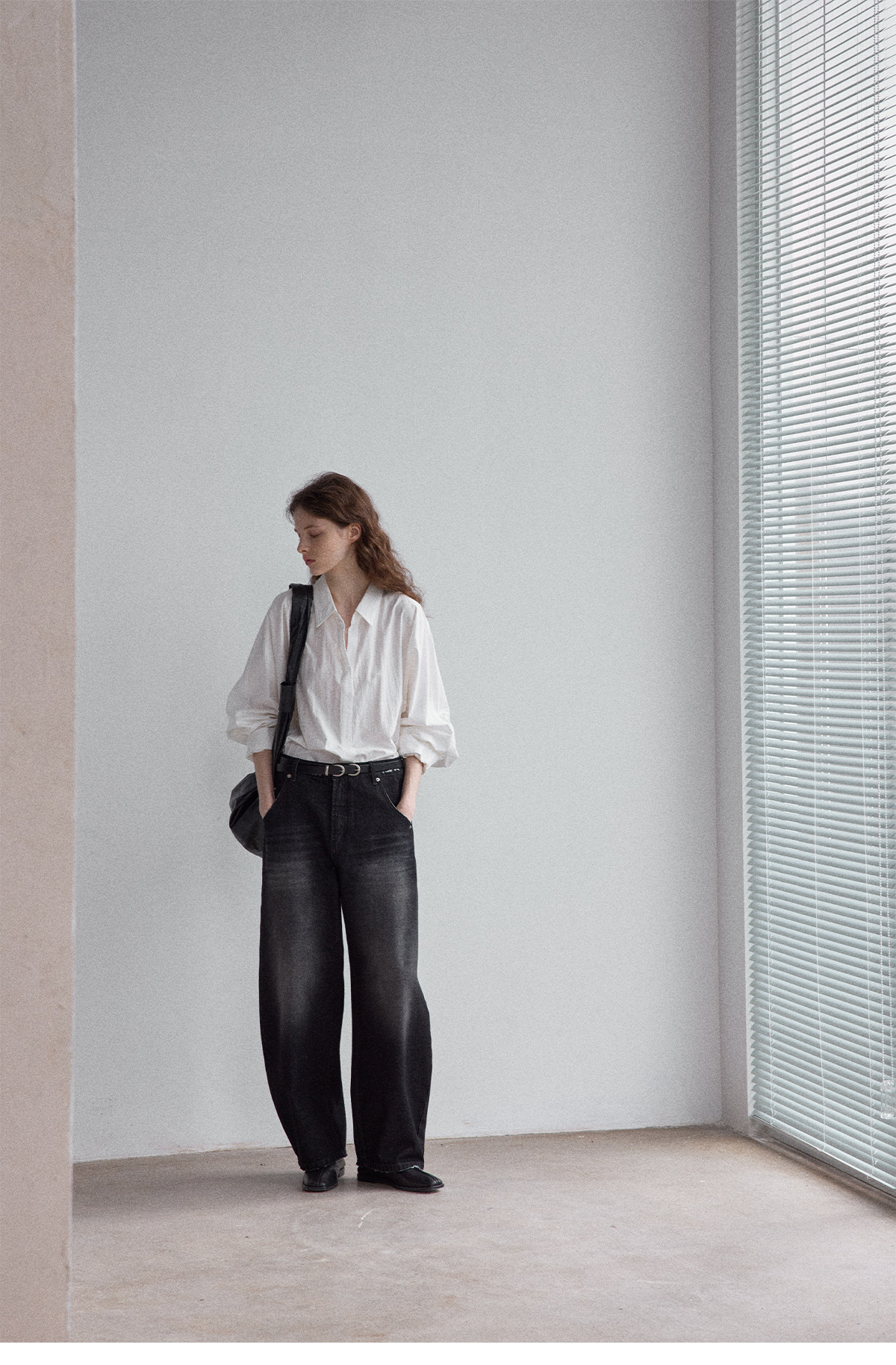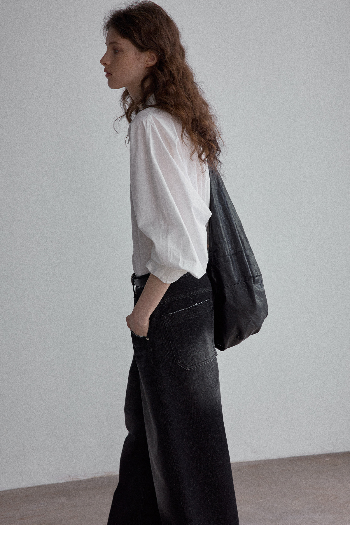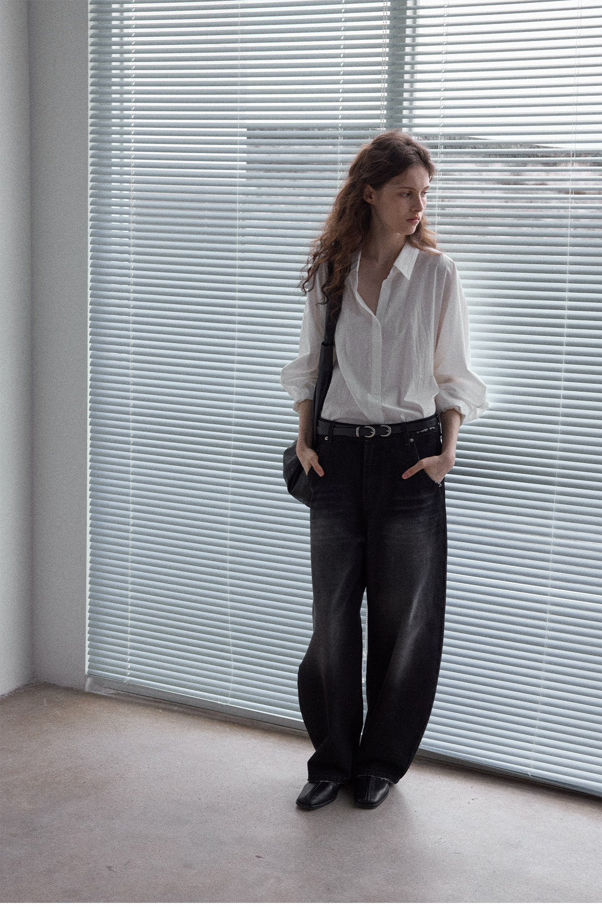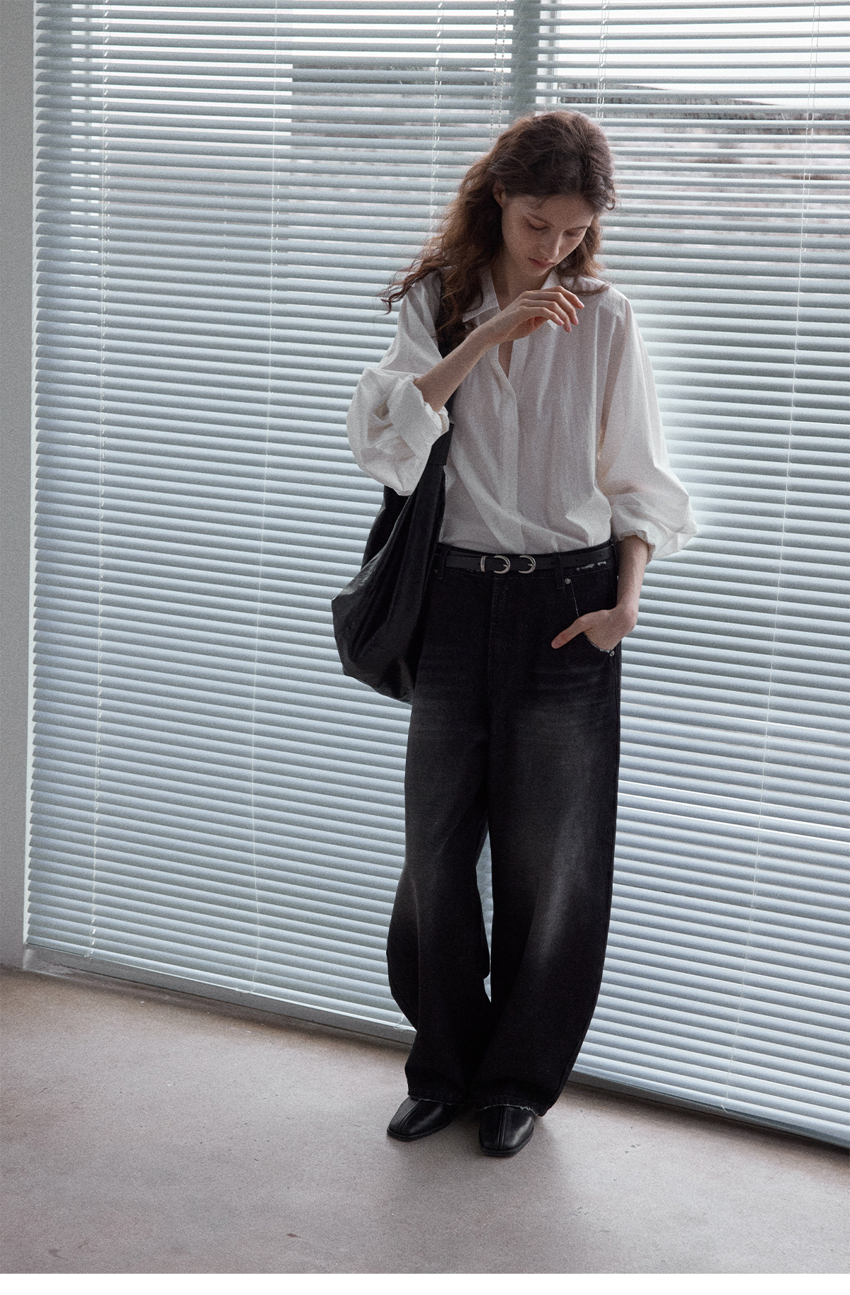 Simple, everyday, versatile pullover top with drawstring, batwing sleeves, and collar, new autumn style, white.