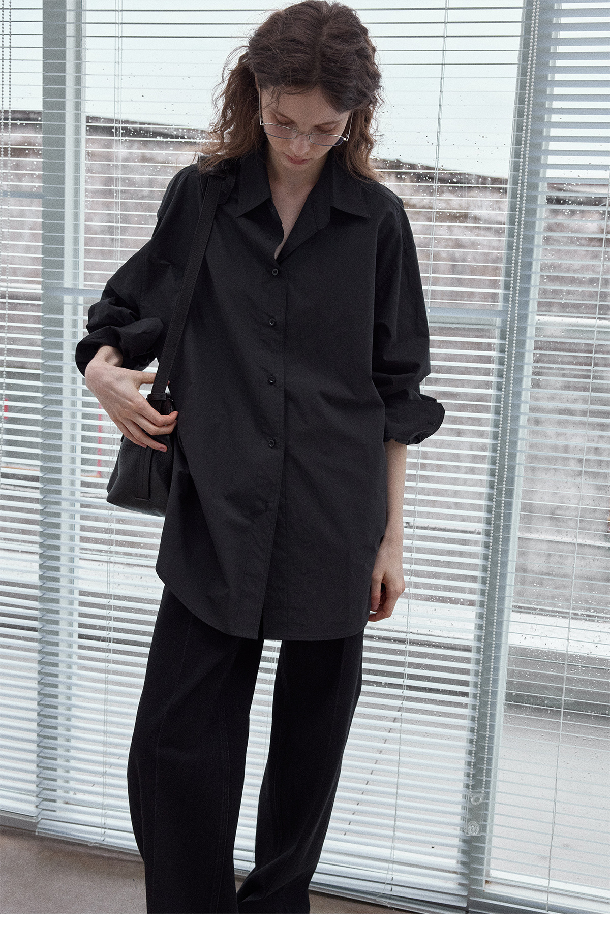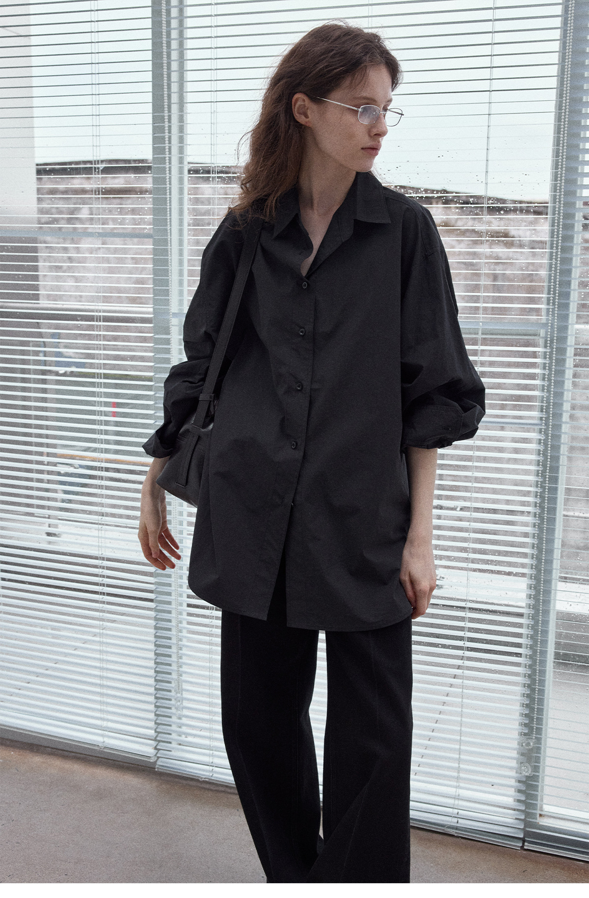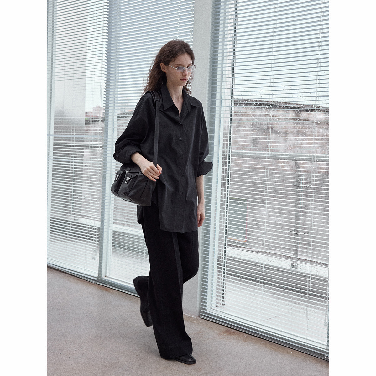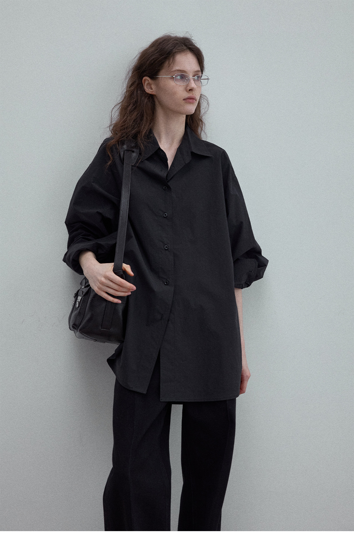 Washed cotton oversized shirt, simple solid color, slimming, flattering, loose fit, suitable for commuting, black.
