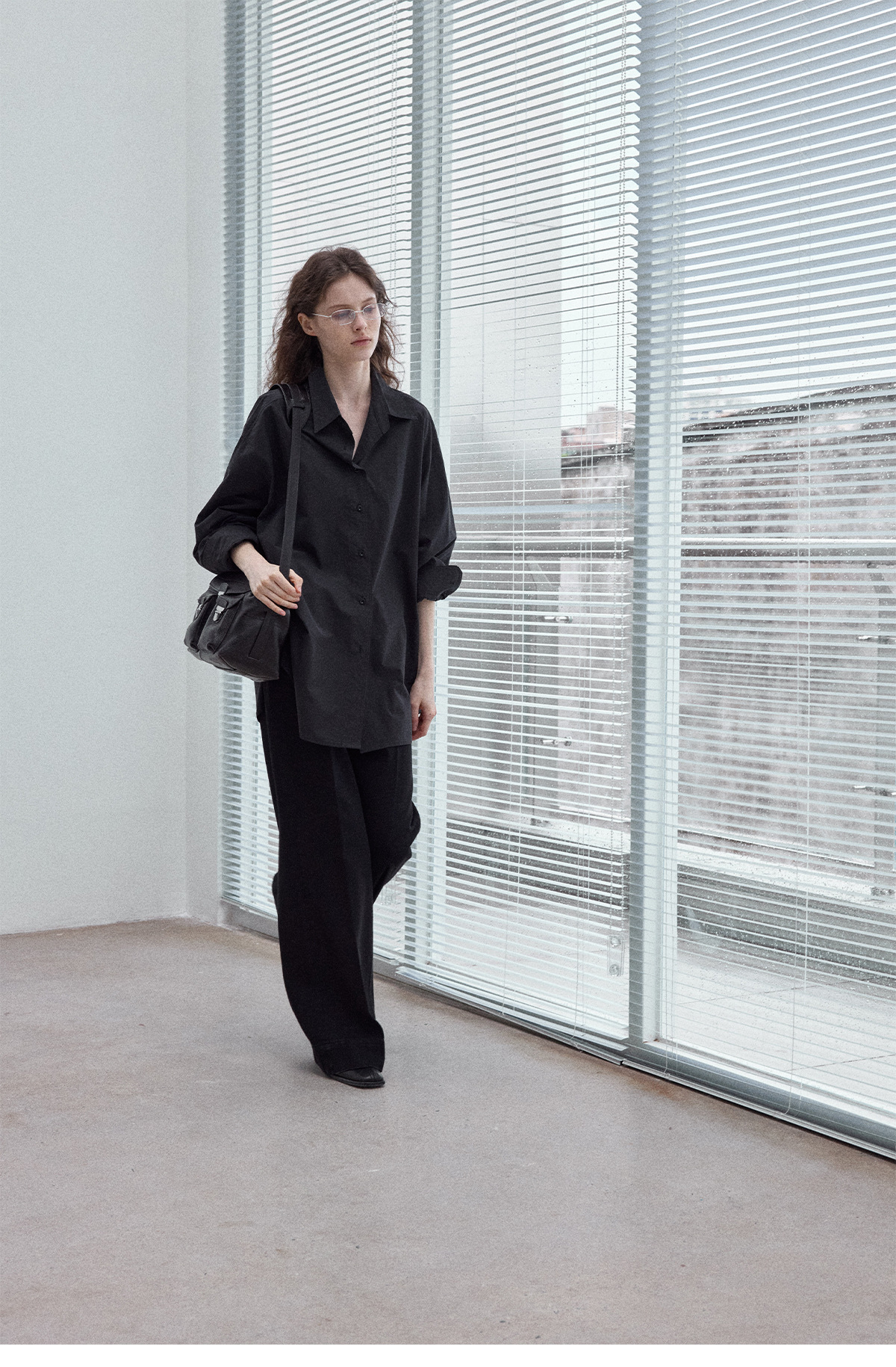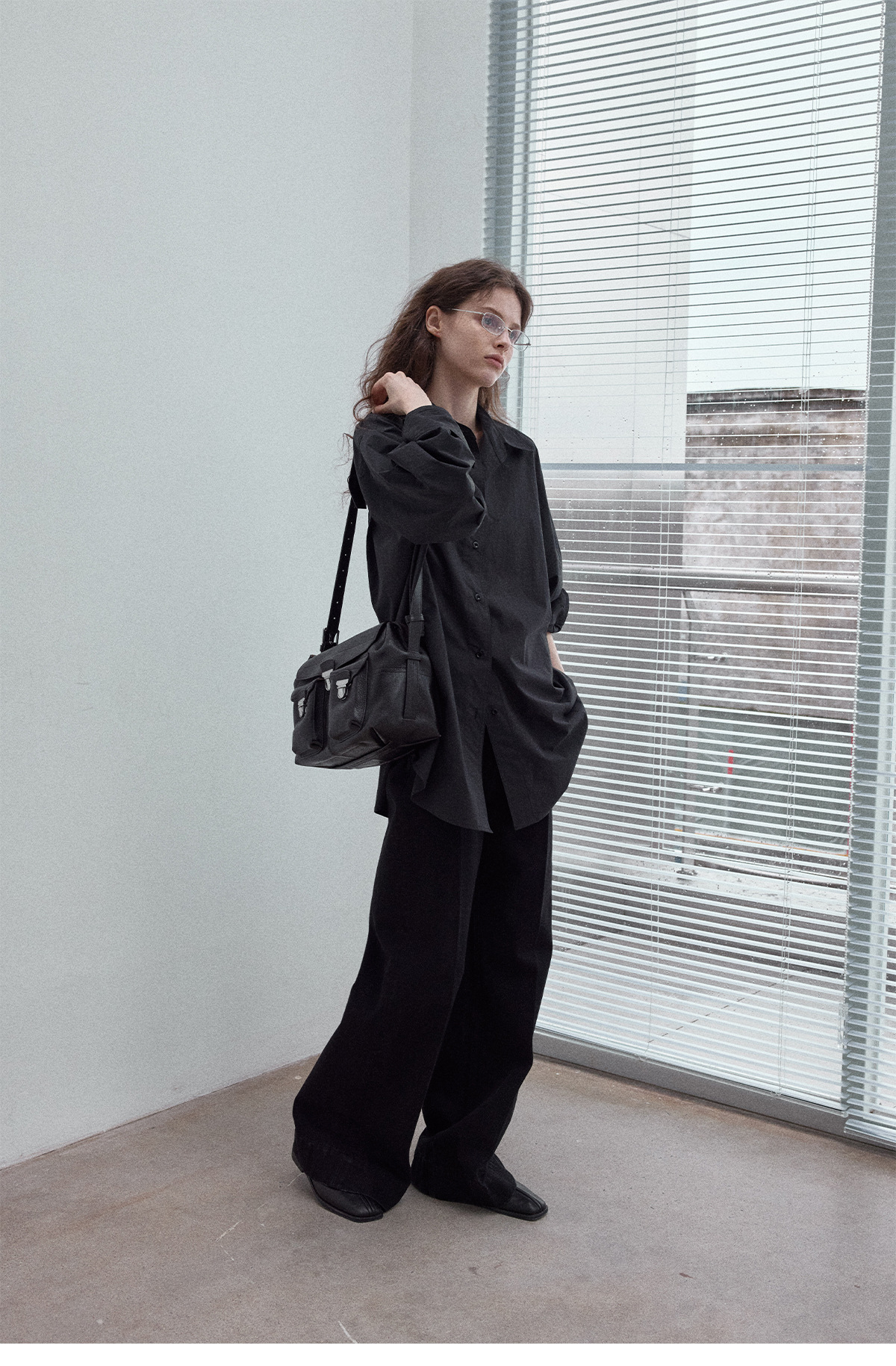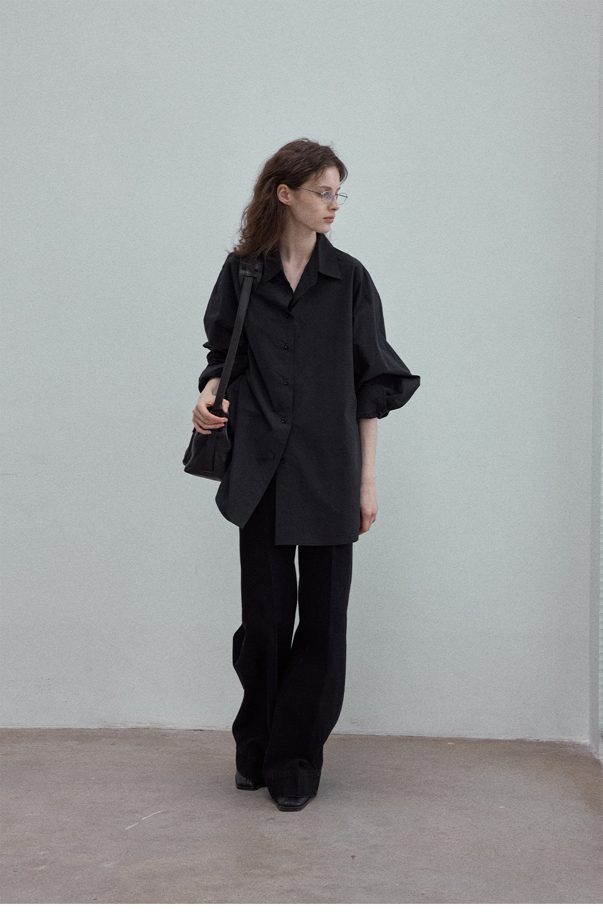 Washed cotton oversized shirt, simple solid color, slimming, flattering, loose fit, suitable for commuting, black.