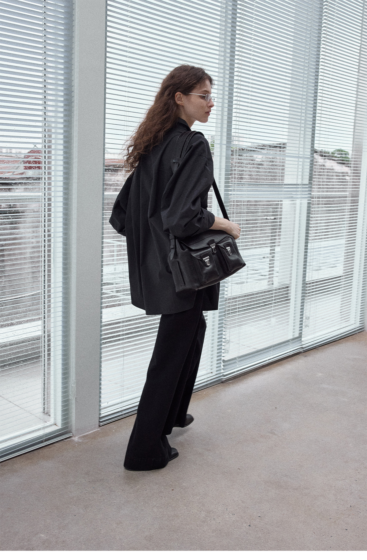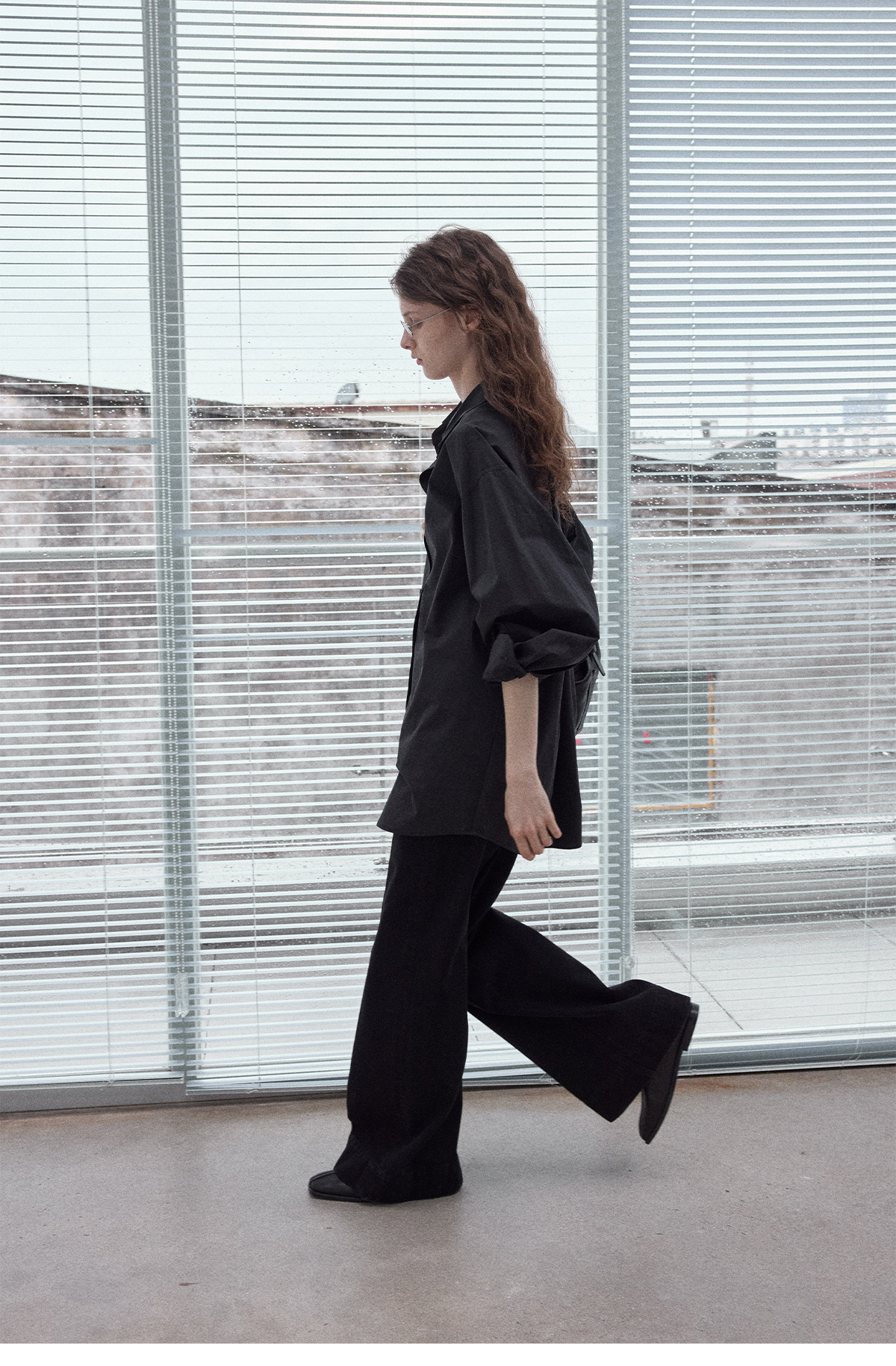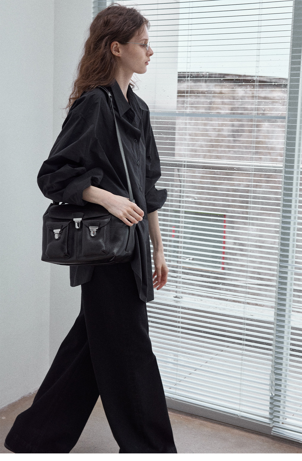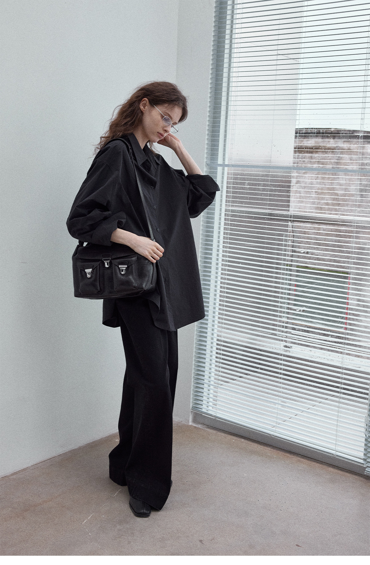 Washed cotton oversized shirt, simple solid color, slimming, flattering, loose fit, suitable for commuting, black.